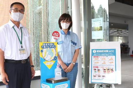 凸版印刷株式会社から消毒設置台2台を寄贈していただき、役場と保健センターに設置しました。新型コロナウイルス感染症対策として、活用させていただきます。ありがとうございました。