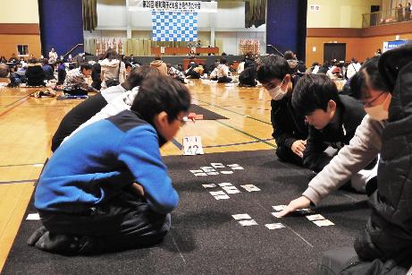 社会体育館で第22回明和町子ども会上毛かるた大会が開催されました。会場では、白熱した戦いが繰り広げられていました。
